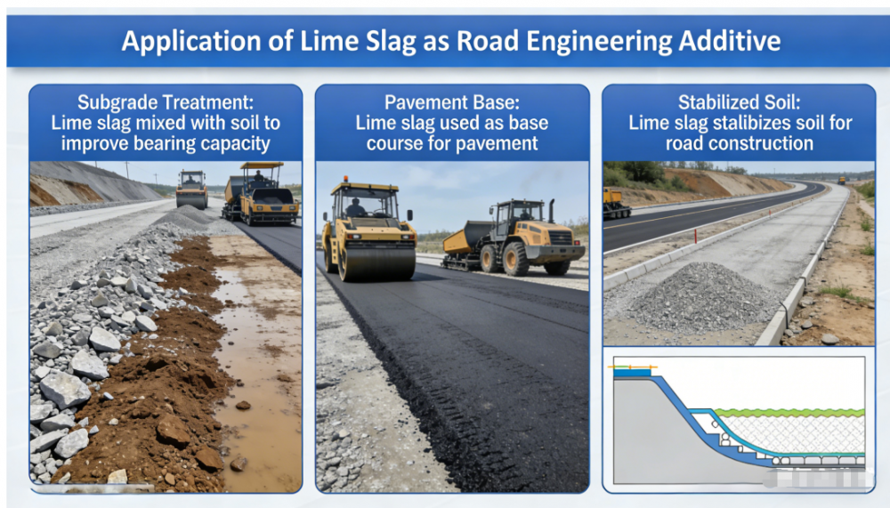 In road construction projects, lime slag powder functions as a high-performance stabilizer for roadbed and pavement base materials. It enhances the strength, stability, and durability of engineering materials, prolonging the service life of road infrastructure while cutting overall construction costs.